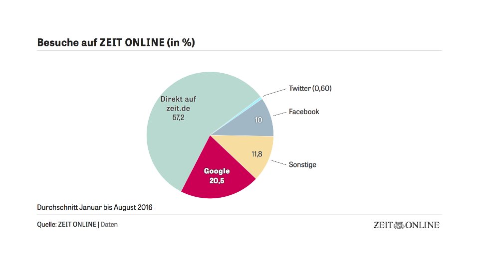 Den Anfang machte Zeit Online. Von Januar bis August 2016 sind demnach 57,2% der Leser direkt auf die Startseite gegangen, um von dort aus zu einzelnen Artikeln zu manövrieren oder sich einen Überblick zu verschaffen. Knapp über ein Fünftel dagegen wurden von Google weitergeleitet, weitere 10% von Facebook.